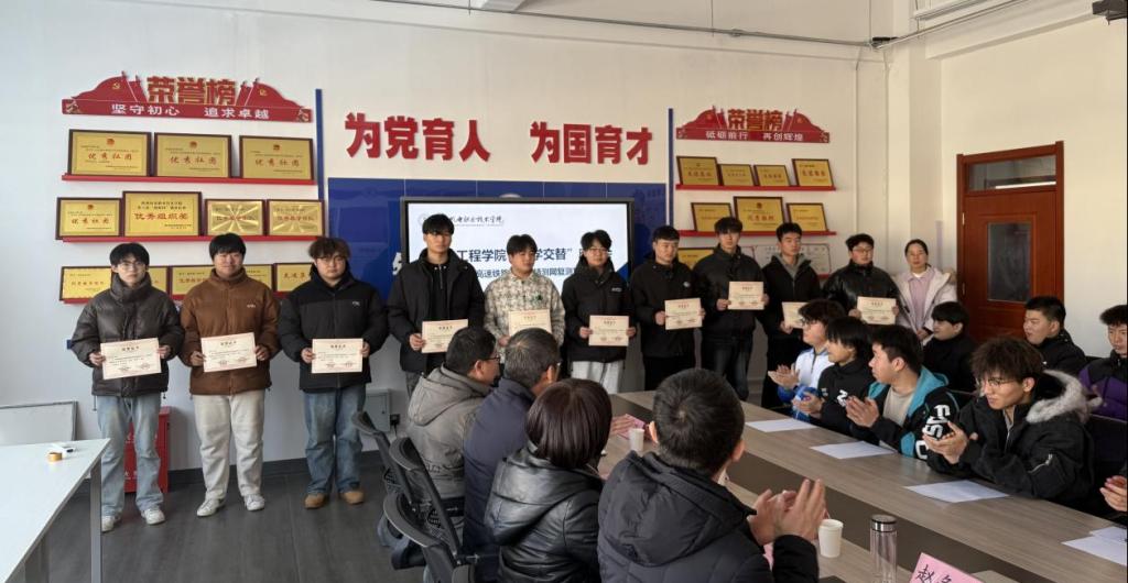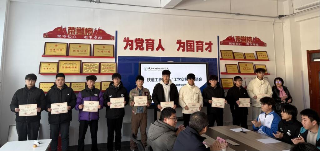 首先,铁道系主任贾强介绍了本次工学交替的整体情况,回顾了师生从筹备到一线实践的全过程。随后,教学管理办公室主任阎玉菡宣读了优秀、良好等次学生名单,赵争东、满春燕、张新蕾分别为三批次获奖学生颁发证书,鼓励他们在实践道路上继续精进。
