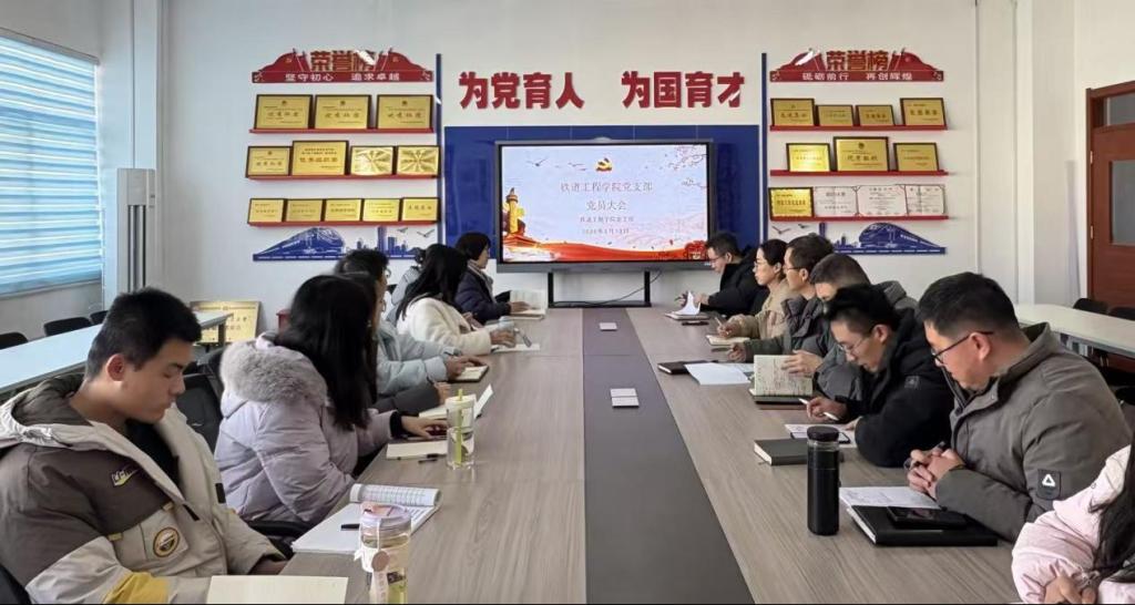 为深入学习贯彻习近平新时代中国特色社会主义思想,推动党建工作与学院中心工作深度融合,以高质量党建引领“双高”建设和学院高质量发展,铁道工程学院党支部于2026年1月13日下午在行知楼南207党建活动室召开党员大会。支部全体党员参会,会议由党支部书记满春燕主持。