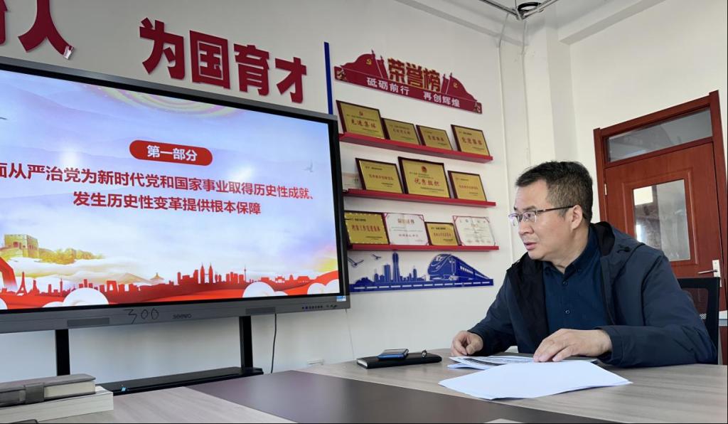 随后,支部副书记卢彦峰以“持之以恒推进全面从严治党”为主题讲授专题党课。党课紧扣党的二十届四中全会精神,围绕“全面从严治党为新时代党和国家事业发展提供根本保障”“‘十五五’时期形势任务对全面从严治党提出新要求”“以永远在路上的坚韧执着纵深推进全面从严治党”三大核心内容,结合高校党建工作实际,系统解读了坚持党中央集中统一领导、用党的创新理论凝心铸魂、增强党组织政治功能与组织功能等关键要求,引导全体党员教师强化纪律意识、筑牢思想防线,将全面从严治党要求融入师德师风建设与教书育人实践,以优良作风推动学院高质量发展。