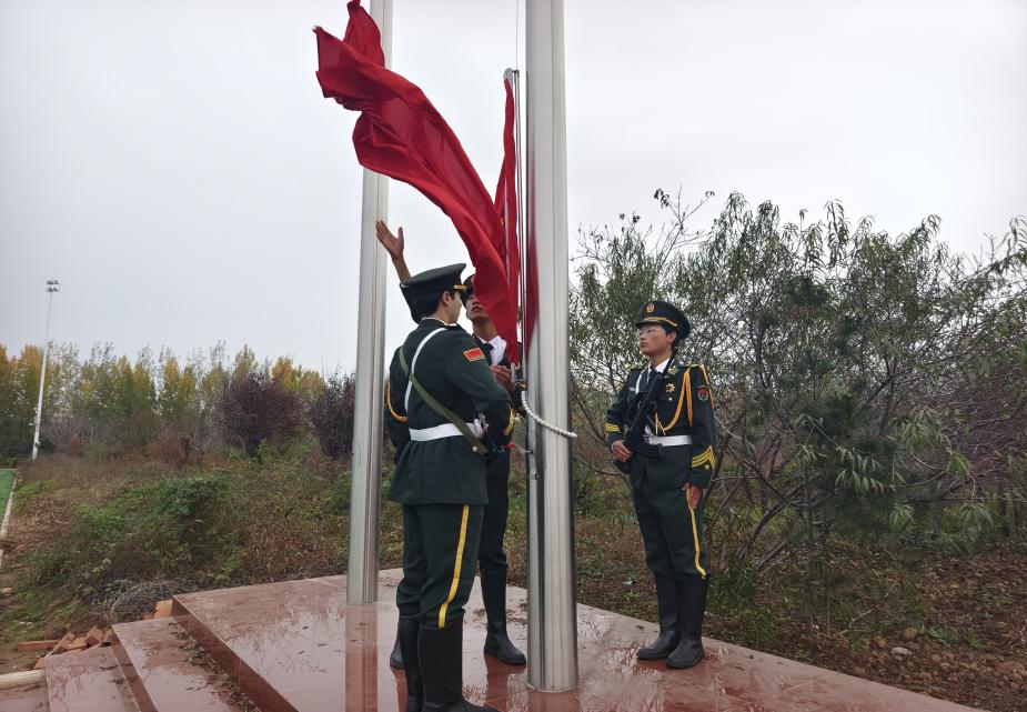 伴随着雄壮的《义勇军进行曲》,五星红旗冉冉升起,全体师生肃立行注目礼,深怀对祖国的无限热爱和崇高敬意。