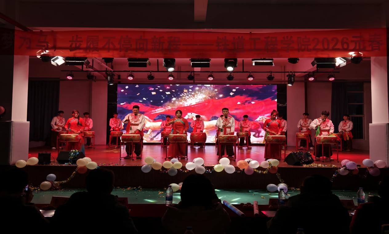 岁序更替,华章日新。2025年12月30日,铁道工程学院再大学生活动中心举办了2026年“以梦为马·逐光而行”元旦晚会,学校党委副书记张琴、学院院长卢彦峰、党支部书记满春燕、副院长李鑫、副院长张新蕾、学生工作办公室主任李帅、教学管理办公室主任阎玉菡出席,铁道工程学院教师、班主任、辅导员及全院学子齐聚一堂,在歌舞声中辞旧岁,于欢笑声里迎新年。
