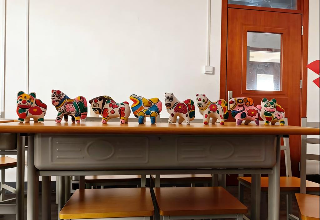 本次活动特邀陕西省工艺美术大师、国家级非遗“凤翔泥塑”区级代表性传承人、胡深世家第六代传人韩建斌老师亲临指导。韩老师结合凤翔泥塑的历史渊源、文化底蕴与艺术特色,细致讲解了泥塑从制坯、塑形到勾线、上色的完整制作流程,用通俗易懂的语言拆解技艺要点,分享非遗传承背后的坚守与匠心,让同学们在聆听中领略传统民间艺术的独特韵味,感受传统文化与静心创作的治愈力量。