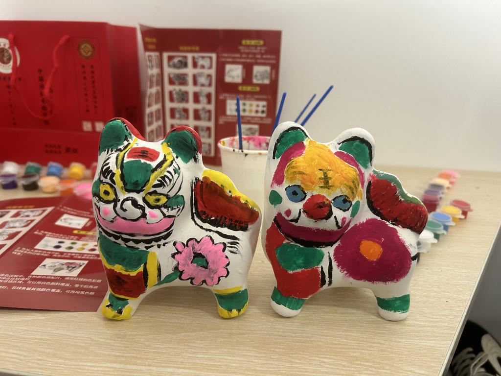 理论讲解后,实践体验环节正式开启。同学们在韩老师的指导下,专注投入泥塑勾线、上色环节。大家手持画笔,凝神静气、细心勾勒,以色彩为媒、以线条为韵,将创意与心绪融入作品之中,原本朴素的泥塑坯体,在一笔一画的精心创作下逐渐鲜活生动。现场氛围轻松愉悦,同学们在沉浸式创作中放下浮躁、专注当下,既体会到手作的乐趣,又在慢节奏的实践中舒缓学业压力,实现身心放松与心灵滋养。