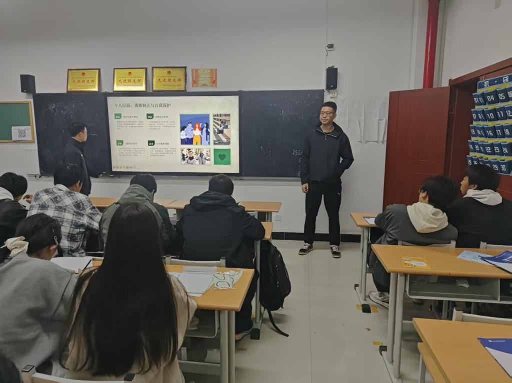 为增强学生的反欺凌意识,营造安全和谐的校园氛围,铁道工程学院于2025年10月26日开展“对欺凌说不,让温暖同行”主题班会活动,全体学生积极参与其中。