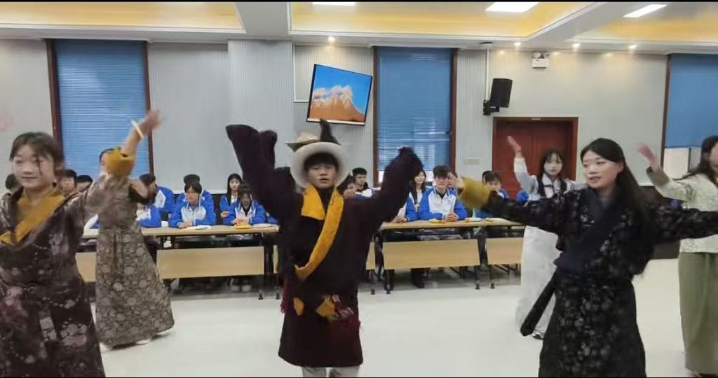 为丰富座谈会氛围,增进各民族学生间的文化交流,现场还开展了精彩的节目表演。歌伴舞《卓玛》旋律优美,舞者身姿灵动,展现出浓郁的民族风情;朗诵《到延安去》情感饱满、气势昂扬,传递出青年学子传承红色基因的坚定信念;藏舞表演中,舞者们身着特色民族服饰,动作舒展流畅,尽显藏族文化的独特魅力;新疆舞表演则热情奔放,欢快的节奏与优美的舞姿赢得了在场人员的阵阵掌声。一个个精彩的节目,不仅是各民族文化的生动展示,更是各民族学子团结友爱的鲜活体现。
