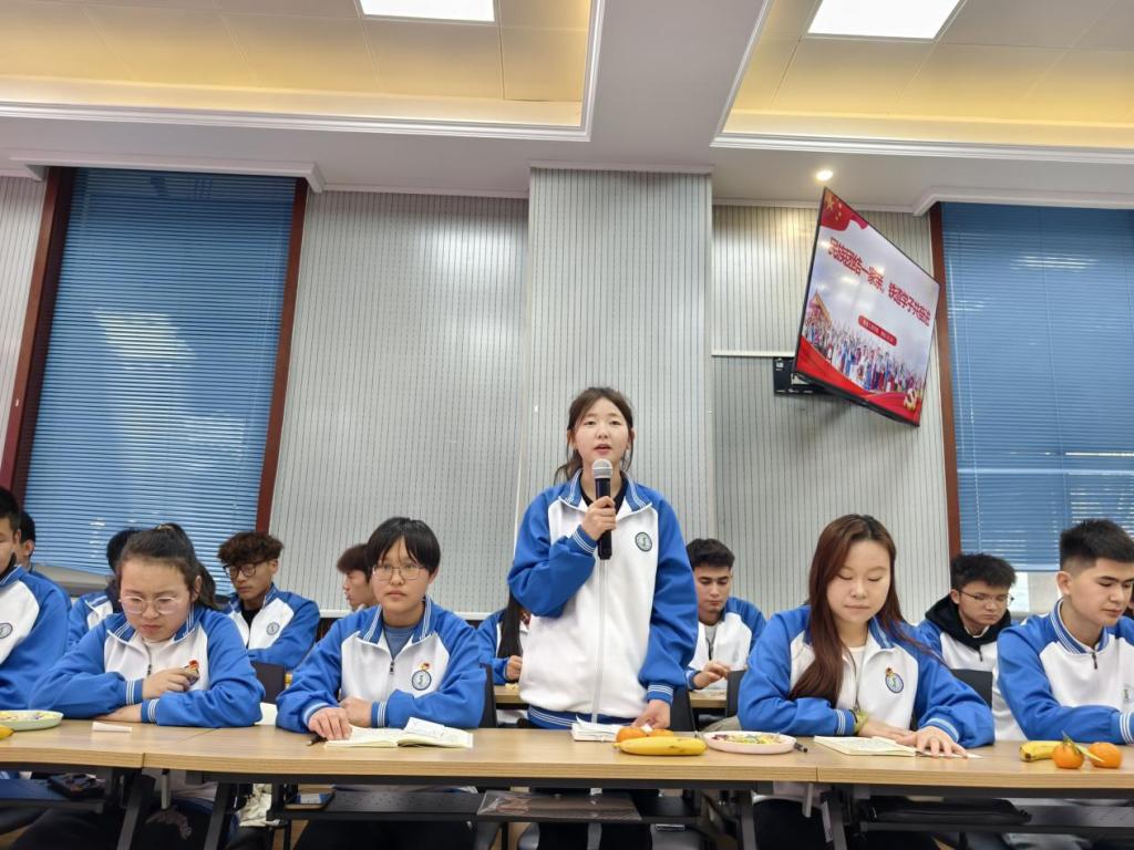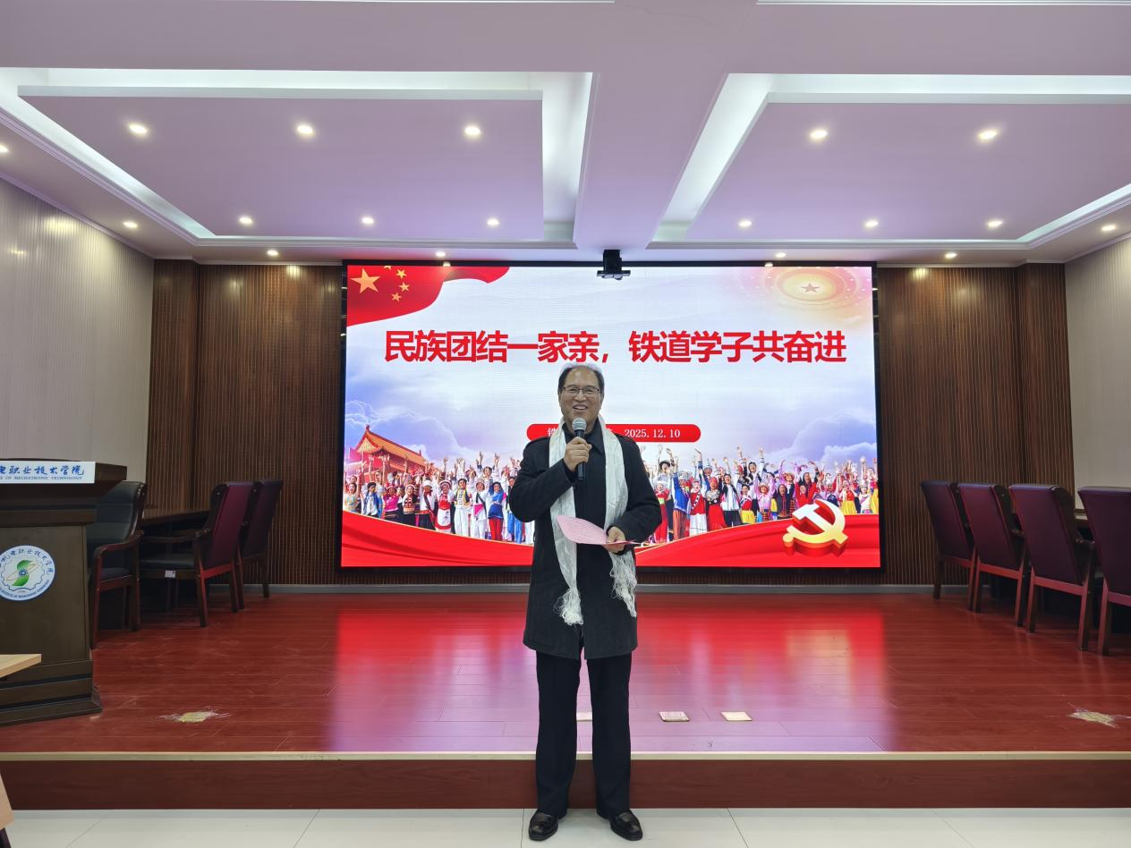 随后,24建筑工程2班的少数民族学生代表麦地娜木・努尔买买提发言。她结合自身在学校的学习与生活经历,分享了在学院关怀下的成长感悟,言语间充满了对学校和老师的感恩之情,也展现出少数民族学子积极向上、努力奋进的精神风貌,让在场人员深切感受到铁道工程学院为学生搭建成长平台的用心,以及学生们在校园里的幸福感。