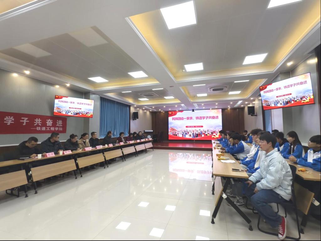 为深入贯彻落实习近平总书记关于加强和改进民族工作的重要思想,铸牢中华民族共同体意识,切实关心少数民族学生成长发展,2025年12月10日下午四点,铁道工程学院在蟠龙校区博学楼111会议室隆重召开“民族团结一家亲,铁道学子共奋进”少数民族座谈会。学校党委书记伊逊智、铁道工程学院院长卢彦峰、铁道工程学院党支部书记满春燕、铁道工程学院副院长张新蕾、党委学工部资助中心主任白兰、少数民族专职辅导员沙亚・革命出席,铁道工程学院教师代表、少数民族学生代表共60余人参会。会议由铁道工程学院党支部书记满春燕主持。